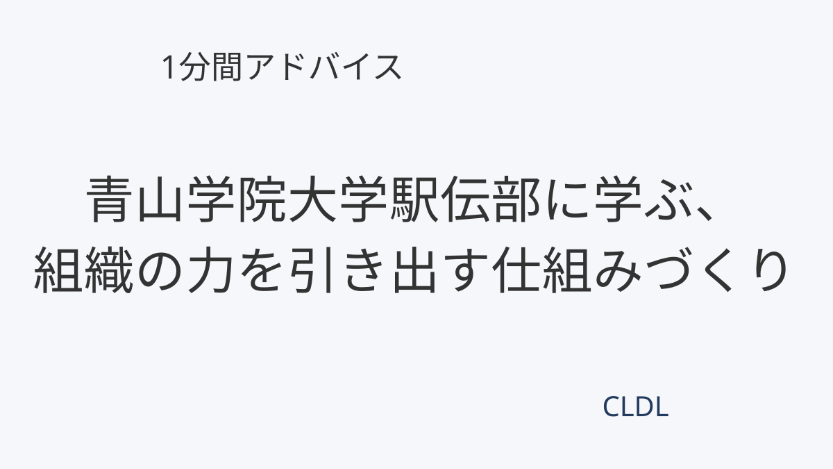 青山学院大学駅伝部に学ぶ、組織の力を引き出す仕組みづくり