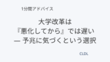 大学を改革しようとすると、「何を変えるか」「どんな制度を入れるか」に目が向きがちです。しかし、強く押し進める改革ほど、現場の反発を招き、形だけで終わることも少なくありません。