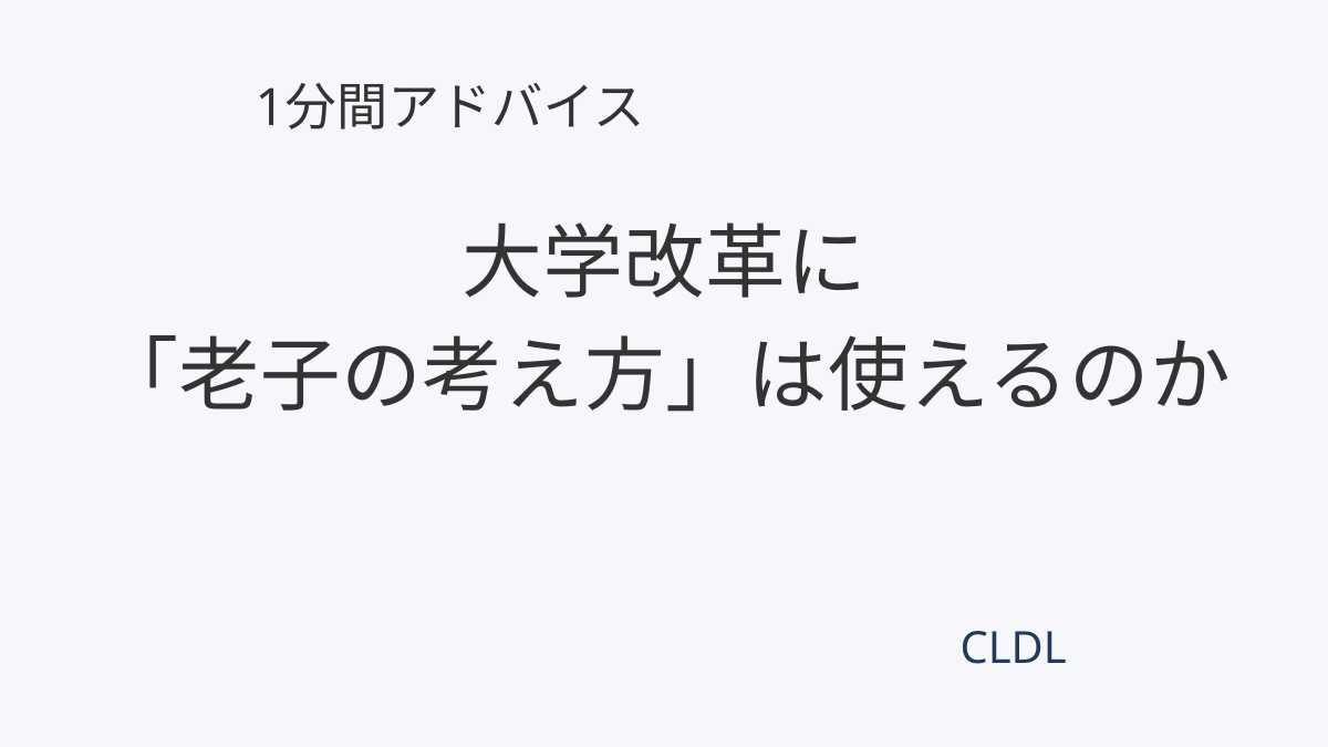 老子の考え方は、そんな大学改革に別の視点を与えてくれます。老子が大切にしたのは、無理に動かさなくても、整うものは整うという発想です。大学改革に置き換えると、「新しいことを足す」よりも、「うまくいっている取り組みを邪魔しているものを取り除く」ことが重要になります。