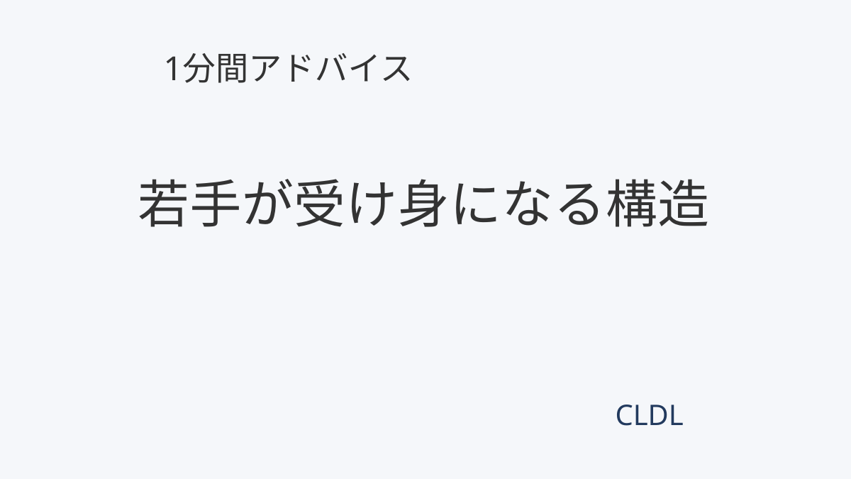 若手が受け身になる構造 人が育つ 2026.01.04 若手が指示待ちになるのは、性格の問題だと思われがちです。しかし多くの場合、決める経験が与えられていません。意見を出しても最終判断は上司が行う。その繰り返しで、人は考えることをやめていきます。主体性は「求めるもの」ではなく、「任せた結果として育つもの」。小さなことでいいので、自分で決めていい範囲を渡す。それが受け身から抜け出すための、最初の設計です。